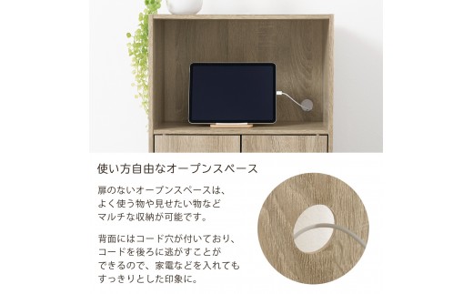 隠したい物は扉内に、見せたい物はオープンスペースに。たっぷり収納、すっきり片付く収納ラック。