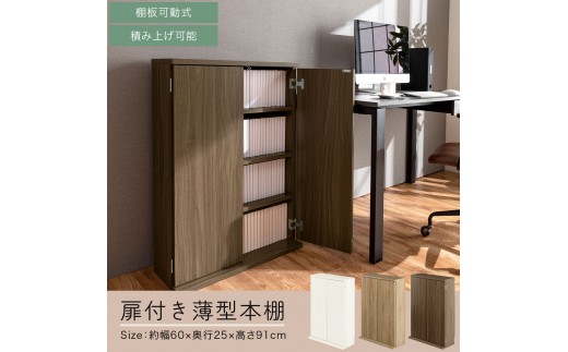- 扉付き本棚〔薄型タイプ〕(AKANBR920112-0-WH)