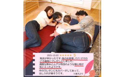 極上ごろ寝マット「TOKURI」のミドルサイズ(60cm×180cm×厚さ5cm)です。高級なマットレス素材に使われる3D立体構造の高反発ウレタンを使っていることで耐圧分散効果があり高評価の寝心地。3つ折り構造で折り畳めばコンパクトに。収納バッグもついているので収納や持ち運びにも最適です。 事業者名:株式会社ゆりかご 連絡先:092-980-4224 関連キーワード:寝具 日用品 人気 おすすめ 送料無料