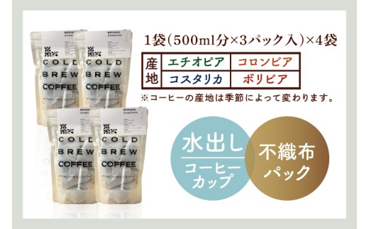 500mlの水出しコーヒーが作れるパックが3つ入っています。