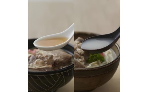 軟骨ソーキそばの“とんこつスープ”と“かつおスープ”を食べ比べできる8食セットをお届けします。