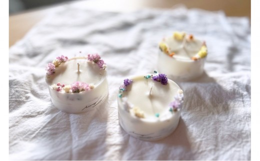 ドライフラワーになったお花をリースのように囲い、彩りと可愛らしさを兼ね備えたインテリアにおすすめのキャンドルです