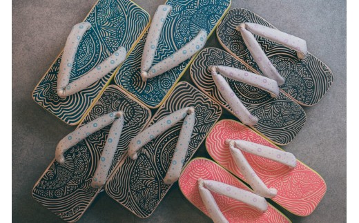 ・岐阜県郡上市で生まれた地場産業「シルクスクリーン印刷」の技術を活かし、下駄の踏み面(天)と鼻緒には精緻なプリントが施されています。