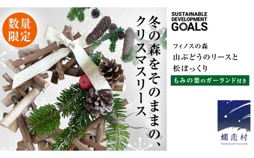 - 【 12月 発送開始 】 クリスマス に最適! フィノスの森 山ぶどうの リース と松ぼっくり & もみの葉の ガーランド 付き クリスマスリース クリスマスツリー アレンジ インテリア 日用品 飾り [BI007tu]