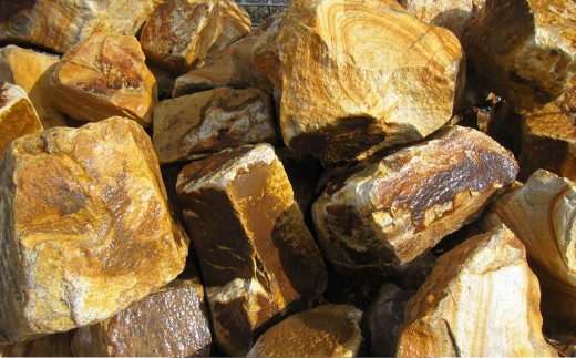 ブラウン系のカラーで、しま模様が特徴的な石です。温かみのある風合いで、和、洋等どんなテイストのお庭にもマッチします。