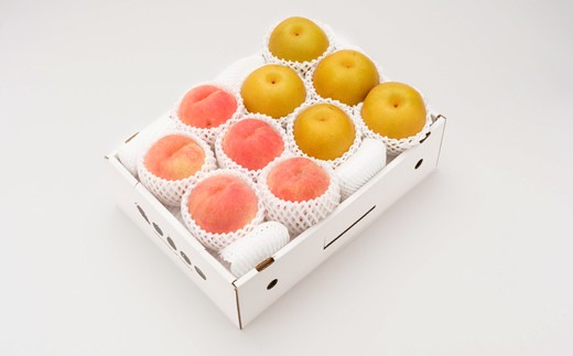 山形県産白桃と和梨を旬の時期に品種おまかせでお届けします。