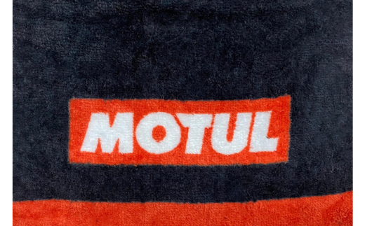 左右には「HONDA / HRC」と「MOTUL」のロゴをプリントしたモータースポーツテイスト溢れるマフラータオル。