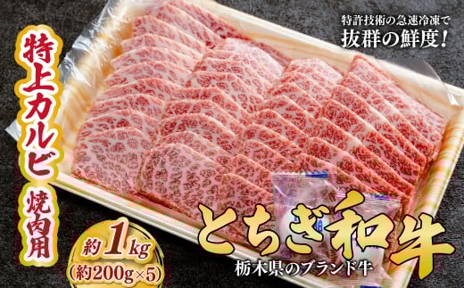 とちぎ和牛の特上カルビ 焼肉用 1kg(200g×5)【栃木県共通返礼品】 | 牛肉 肉 お肉 カルビ 特上 バラ肉 焼肉 産地直送 国産 国産牛 交雑 赤身 霜降り 希少 旨味 旨み 熟成 急速冷凍 テクニカン テクニカン社 スキンパック 真空パック 真空包装 コトラミートカルチャ 栃木県 茂木町
