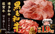 - 博多和牛 ステーキ (サーロイン) 4枚 (計約1kg) + 佐賀牛 切り落とし 400g / 黒毛和牛 黒毛和種 和牛 牛肉 お肉 肉 サーロイン肉 セット 国産 九州 福岡県 太宰府市 冷凍