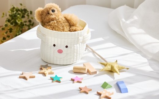 キルトバスケット、にぎにぎシリコーントイ、ガーゼミニタオル、