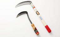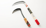 ガーデニングや除草作業に適しています。軽くて切れ味バツグンです。 ※硬い枝や木の伐採には使用できません。 ■産地 熊本県水俣市産 ■原材料 材質/安来鋼青紙2号、SK-5 【両刃鎌】 ・刃渡り/180mm ・全長/400mm ※軟らかい草用 【カット鎌】 ・刃渡り/100mm ・全長/280mm ■事業者 合同会社宮尾刃物鍛錬所 【地場産品に該当する理由】 本市内で火造り、成形、研磨等、製造工程の50%以上を行うことで相応の付加価値が生じているため。(告示第5条第3号に該当)