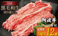牛肉 切り落とし 定期便 12回 1kg A4ランク以上 黒毛和牛 国産 和牛 阿波牛 牛 うし ビーフ 肉 モモ バラ A4 A5 焼き肉 しゃぶしゃぶ すき焼き 焼肉 BBQ アウトドア おかず ごはん 米 ご飯 スライス ギフト 贈答 お取り寄せ お盆 中元 徳島 阿南