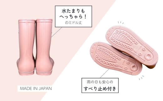 【くすみピンク】子ども用 長靴(サイズ18cm)ミドル丈 高さ 18.5cm くすみカラー ながぐつ レインブーツ キッズ 子供 18センチ 子供用 日本製 下呂市【アルクア飛騨】