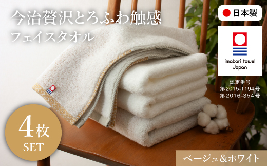 - 今治贅沢とろふわ触感 フェイスタオル(ベージュ×2枚、ホワイト×2枚) 【m100-10-F】【トクダ】