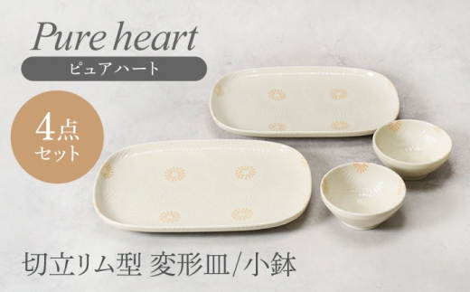 【美濃焼】ピュアハート 切立リム型 変形皿 2点 & 小鉢 2点 合計4点セット 【カネ定製陶】 和食器 うつわ セット [MEI158]