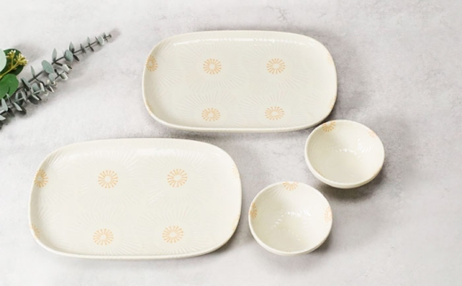 - 【美濃焼】ピュアハート 切立リム型 変形皿 2点 & 小鉢 2点 合計4点セット 【カネ定製陶】 和食器 うつわ セット [MEI158]