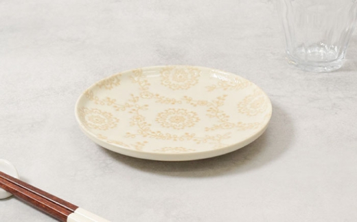 プレート 取り皿 ケーキ皿 洋食器 ホワイト レース 白 ベージュ 洋風 ファミリー 4枚 セット シンプル