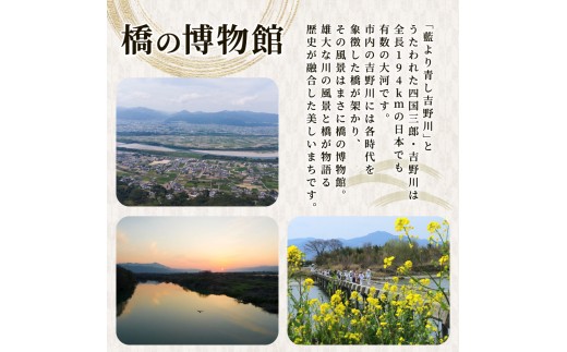 吉野川市は、美しい清流「四国三郎」吉野川に育まれ、ホタルやツツジの大群生など四季折々の豊かな自然が息づいています。また、誇りある歴史と伝統、文化を受け継ぎながら「世代を越えて夢紡ぐまちー新・生活創造都市をめざしてー」を市の将来像とし、さらなる飛躍を目指しています。
