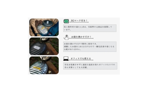 適度な湿度を保つソフトな暖房。沸騰したお湯を入れるだけなので、一酸化炭素中毒の心配がありません。湯たんぽカバー大ベージュが適応しています。 ●製造元:尾上製作所 ※画像はイメージです。 ※離島・沖縄県への配送不可 ●地場産品類型3号:姫路市内にて製造