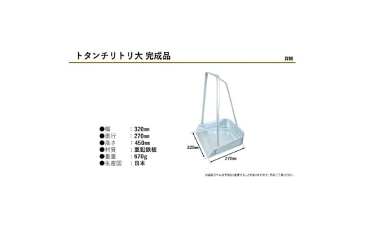 サイズ:320×270×450mm、重量:0.67kg、材質:亜鉛鉄板、生産国:日本