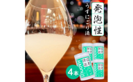 ワイングラスに注いでゆっくり味わうと、お米の甘みと自然発泡の優しい泡立ちを楽しめます。