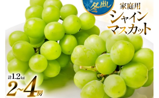 - 【期間限定発送】 2026年 冬出し 訳あり 家庭用 シャインマスカット 1.2kg (2〜4房) [いわた果樹園 山形県 高畠町 tk06ayt400005] ぶどう ブドウ 葡萄 マスカット フルーツ 果物 くだもの 産地直送 農家直送 果実 デザート シャイン
