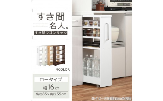 - 【国産家具】すき間ワゴンラック ロータイプ〔幅16cm・シンプルタイプ〕(ホワイト)隙間収納 キッチンラック スリム スリムラック キッチン キッチンワゴン 収納 すき間収納 ランドリー ラック 薄 KRA945187-0-WH