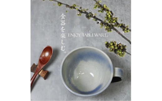 - 信楽焼 陶器製 丸型スープカップ (ブルーベリー)