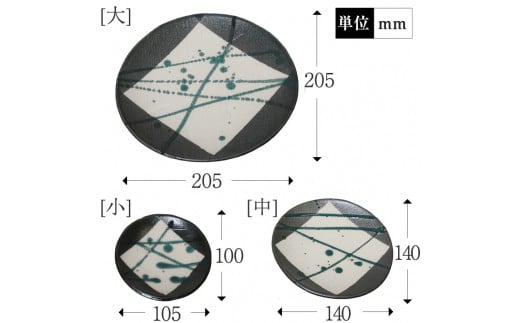 - 信楽焼 雫シリーズ 変形黒皿緑雫丸皿3点セット(大/中/小)