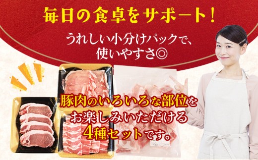 <宮崎県産 豚肉4種セット 1.5kg>ロースしゃぶしゃぶ とんかつ バラ焼肉 小間切れ 冷凍 国産 便利な小分けパック ぶた ブタ 豚こま切れ 切り落とし 炒め物 豚汁 生姜焼き 野菜炒め 使いやすい 色々な部位【MI662-nh】【日本ハムマーケティング株式会社】