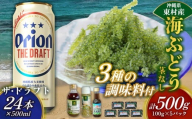 東村を楽しむセット!海ぶどうセット(茎あり)1kg&調味料3種&ザ・ドラフト500ml×24本 海ブドウ 海ぶどう うみぶどう パック 茎あり クビレズタ たれ付き 海鮮 海藻 プチプチ おつまみ オリオン orion ビール オリオンビール 1ケース 酒 常温 沖縄県 東村