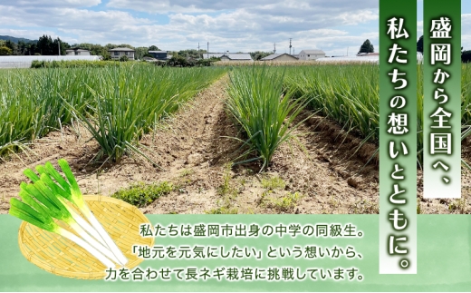 寒暖差のある盛岡の気候と豊かな土壌が育てた長ネギは、甘みが強く、加熱するととろけるような食感に。鍋料理や炒め物はもちろん、薬味としても大活躍。地元への想いを込めて、1本1本丁寧に育てました。「この長ネギは、地元・盛岡で育った僕たち二人が、力を合わせて一から育てました。小さい頃からの同級生で、農業の道に進んだ今も一緒に汗を流しています。作業は大変なこともありますが、二人だからこそ乗り越えられるし、収穫の喜びも分かち合えます。『自分たちの手で作った長ネギを、全国の食卓へ届けたい』——その想いで毎日畑に立っています。盛岡の自然が育てた自慢の味、ぜひ味わってみてください。」