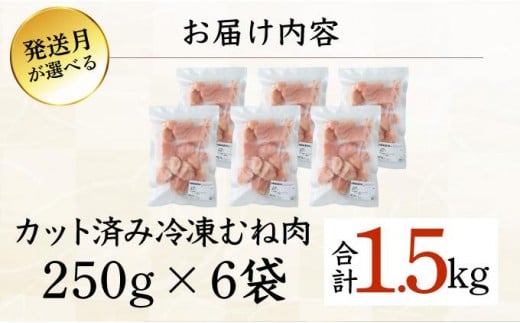 KU230-M15-2512<2025年12月発送・数量限定> 小分け&バラバラ!選べる!宮崎県産鶏むねカット 合計1.5kg (250g×6袋)