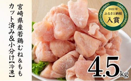 KU230-MO45-2601<2026年1月発送・数量限定> 小分け&バラバラ!選べる!宮崎県産鶏もも・むねカット 合計4.5kg(計250g×18袋)