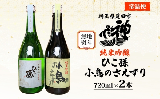 無地熨斗 神亀酒造 ひこ孫 小鳥のさえずり セット 各720ml × 2本 計1440ml 埼玉県 蓮田市 お酒 晩酌 家飲み 日本酒 お燗 食事と一緒に楽しめる 純米吟醸酒 日本酒 飲み比べ 熱燗 ぬる燗 常温 冷や 辛口 お祝い ギフト 地酒 山田錦 贈り物
