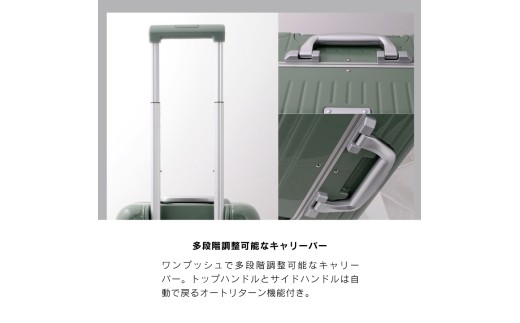 ハンドルはオートリ―ターン機能付き、キャリーバーは多段調整可能。
