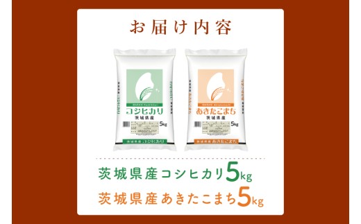 茨城県産の人気2銘柄「コシヒカリ」、「あきたこまち」5kg×各1袋(計10kg)をお届けします!