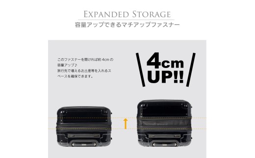 容量を増やせるマチアップファスナーが付いているので帰りに増えるお土産などを入れるスペースを確保できます。