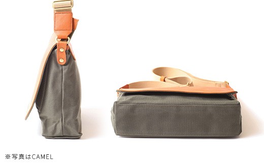 キャンバス(帆布)と、牛革のかぶせ部分が上質感を感じる逸品です。