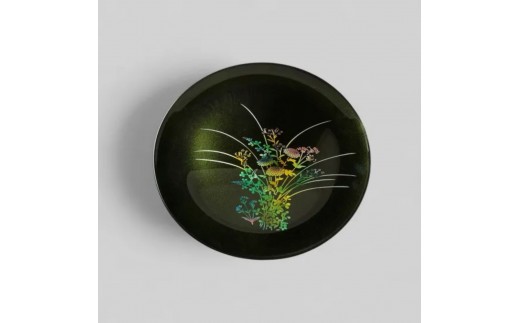 ガラスの裏面から特殊漆を意匠付けし、特殊食器洗浄機対応コートで漆をカバーしている漆器です。