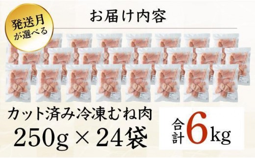 KU230-M6-2603<2026年3月発送・数量限定> 小分け&バラバラ!選べる!宮崎県産鶏むねカット 合計6kg (250g×24袋) 2374575 - 宮崎県串間市