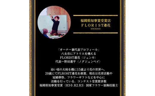 福岡県知事賞を受賞したフラワーデザイナーが、一つひとつ丁寧に制作。
