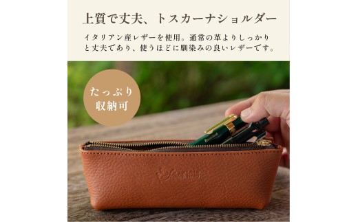 イタリアンレザー・トスカーナショルダーを使ったペンケース。通常の皮より上質で丈夫でしっかりした高級レザーです。中は十分なゆとりがありますので、筆記具をたくさん収納可能です。