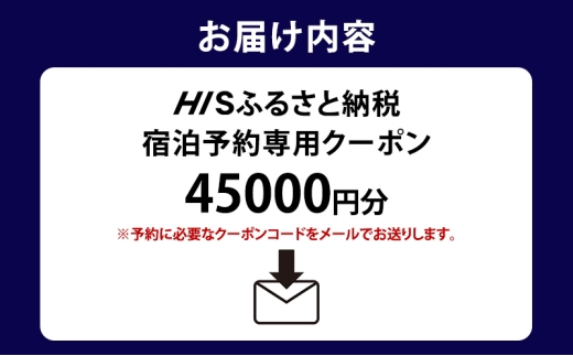 ※「HISふるさと納税宿泊予約専用クーポン」についての情報はメールで送信されます。物理的な配送は行われません。