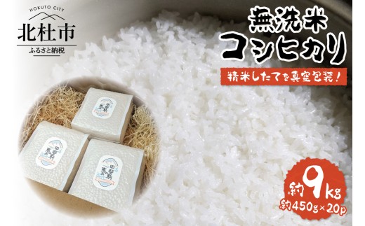 米 白州米 コシヒカリ 無洗米 真空パック 期間限定 3合 約450g 20個 栽培期間中 農薬不使用 化学肥料不使用 精米したて 真空包装 長期保管 備蓄 防災 キャンプ 山梨 北杜市