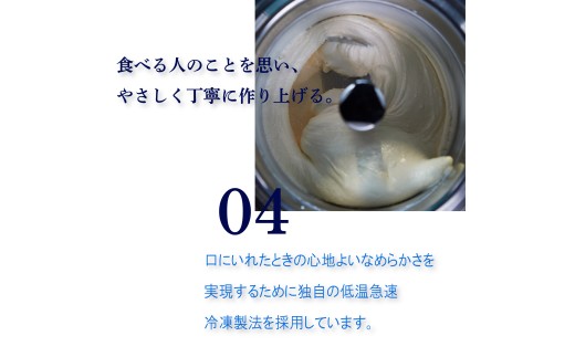 ③ 口の中で混ざり合うなめらかでキメの細かいアイスを実現するために独自に開発した“低温急速凍結製法”を採用。