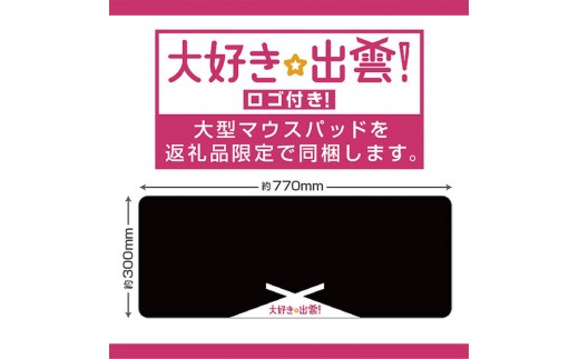 ■出雲市ふるさと寄附返礼品モデル限定でもれなく「大好き☆出雲!」ロゴの入った大型マウスパッド(横770mm 縦300mm)を同梱。