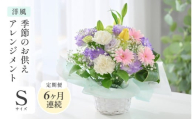 季節の花々を丁寧にアレンジした、心を込めたお供え用フラワーアレンジメントSサイズを6ヶ月連続でお届けします。