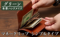 - a509-05 <グリーン>本革ハンドメイド!5色から選べるマネークリップシンプルタイプ(札ばさみ)!【皮革工房凜】 姶良市 日本製 本革 革 革製品 マネークリップ 手縫い ブラック ブラウン キャメル レッド グリーン おしゃれ シンプル メンズ レディース