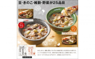 お豆、きのこ、雑穀、野菜。それぞれの食感が楽しめる具沢山のお粥です。シンプルな塩味ですが、素材の旨みが溶け出した奥深い味わいです。1食あたり96kcalなので、お夜食にもおすすめです。